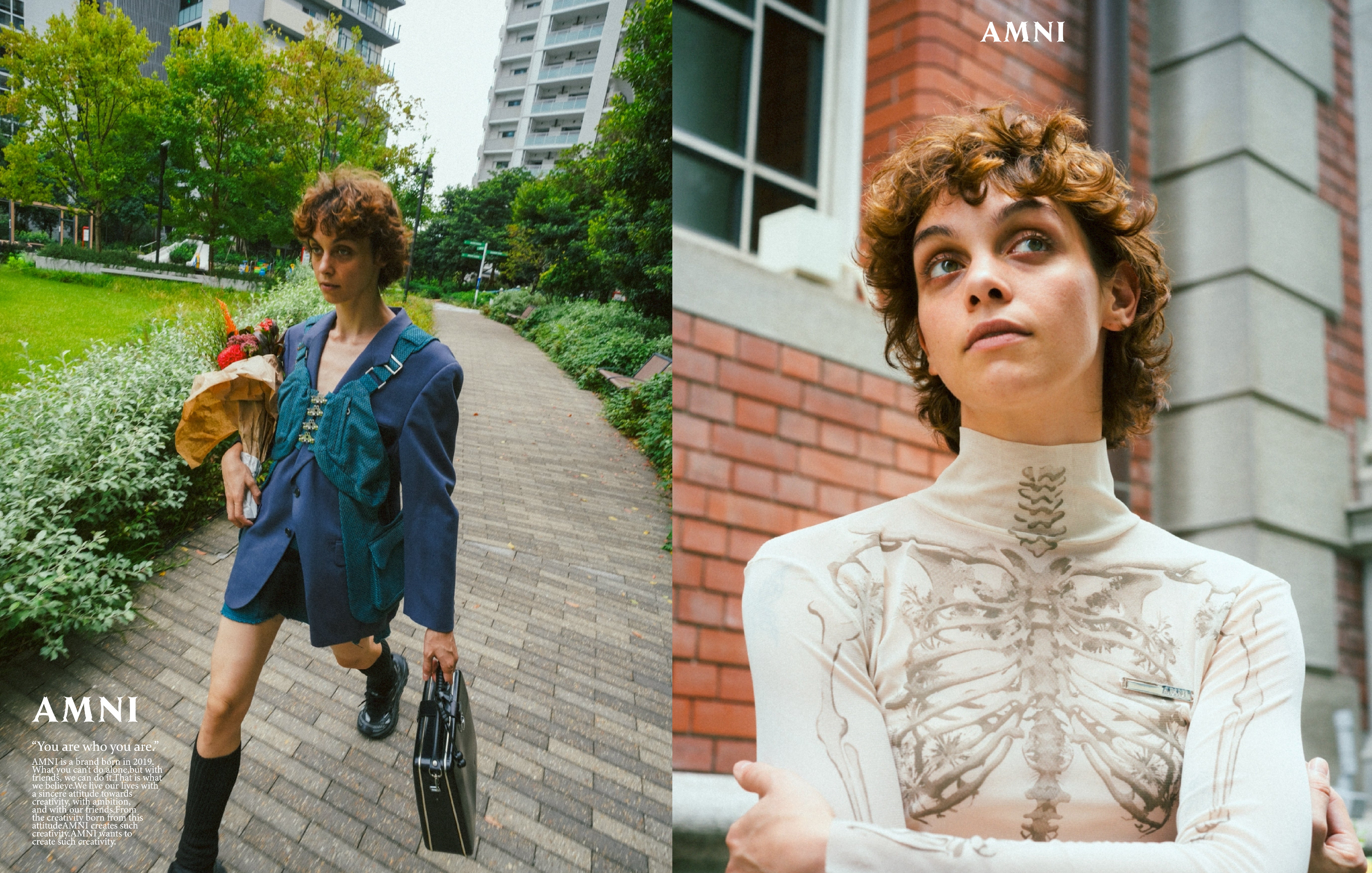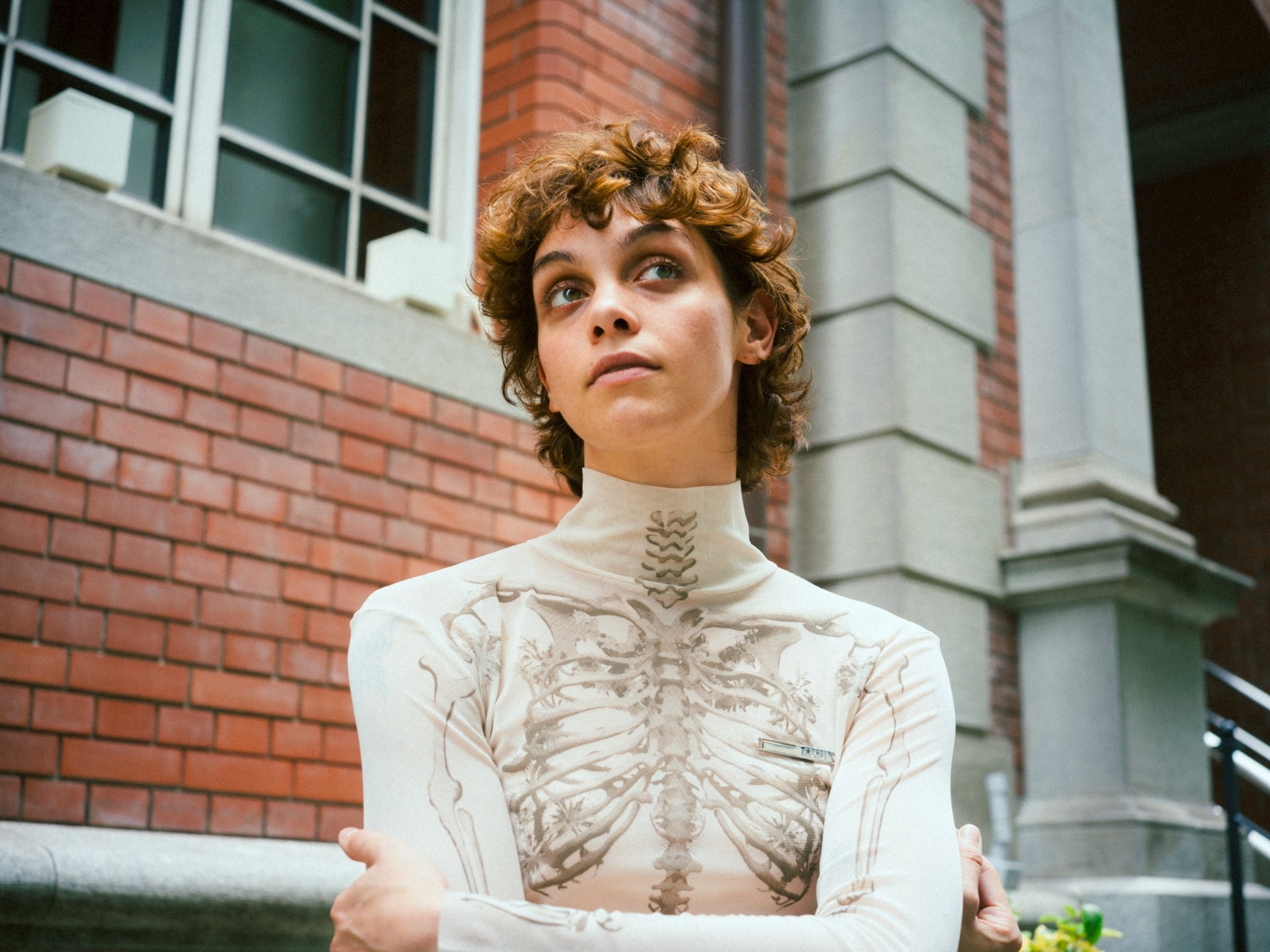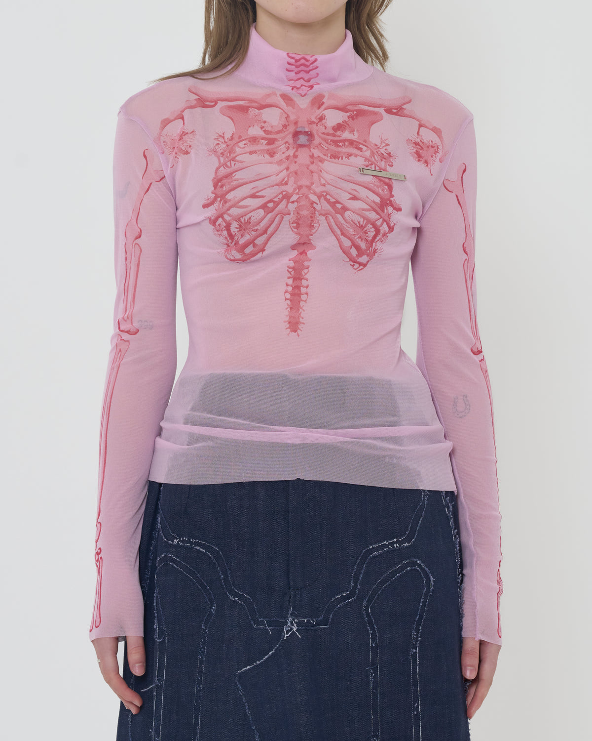 Skeleton T-shirt / Charcoal gray × Sky blue