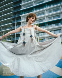 惑星AMNIに咲く花のモチーフが付いたワンピース。