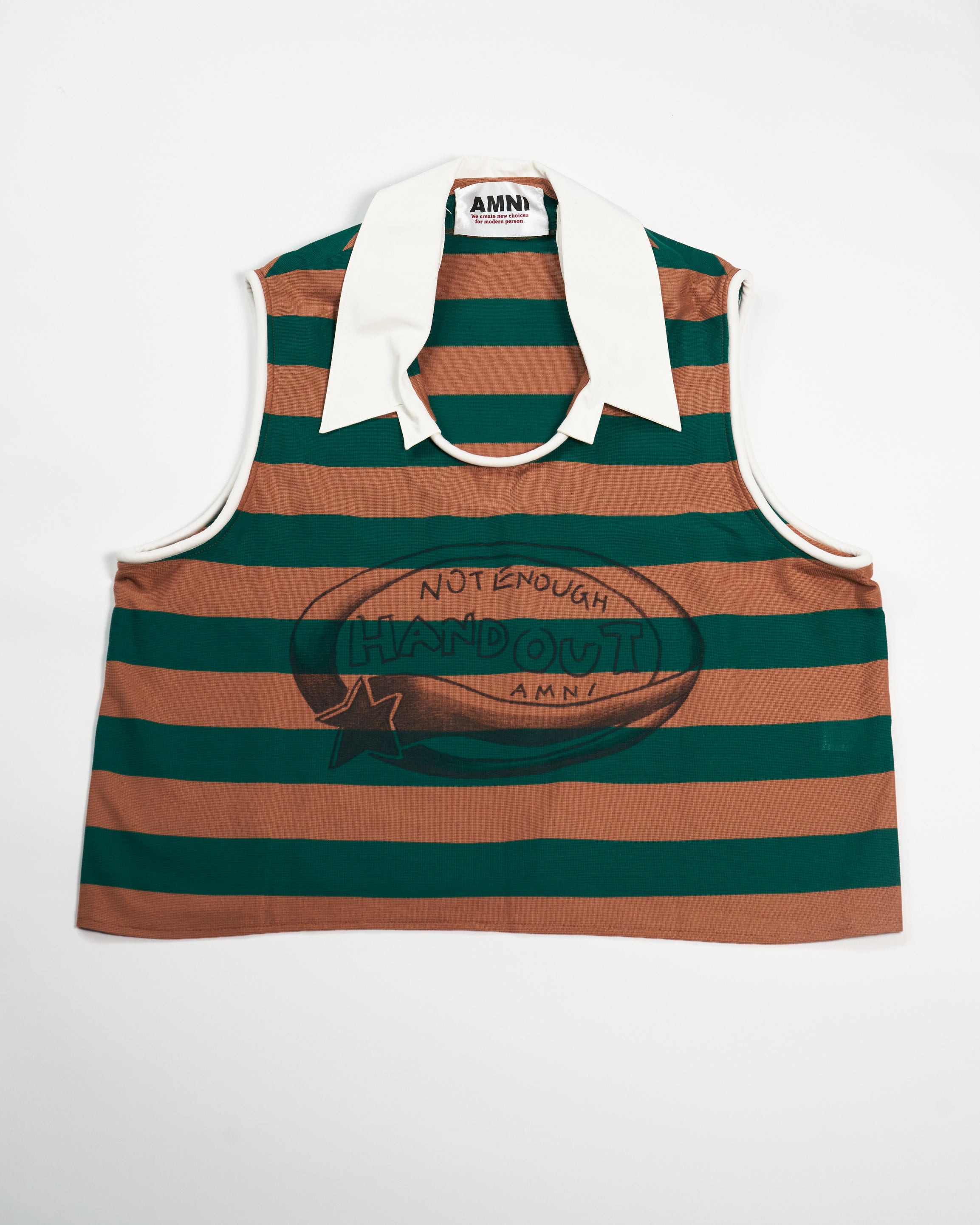 Un débardeur peint à la main, inspiré d’une phrase entendue à l’école primaire, avec un style griffonné.