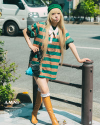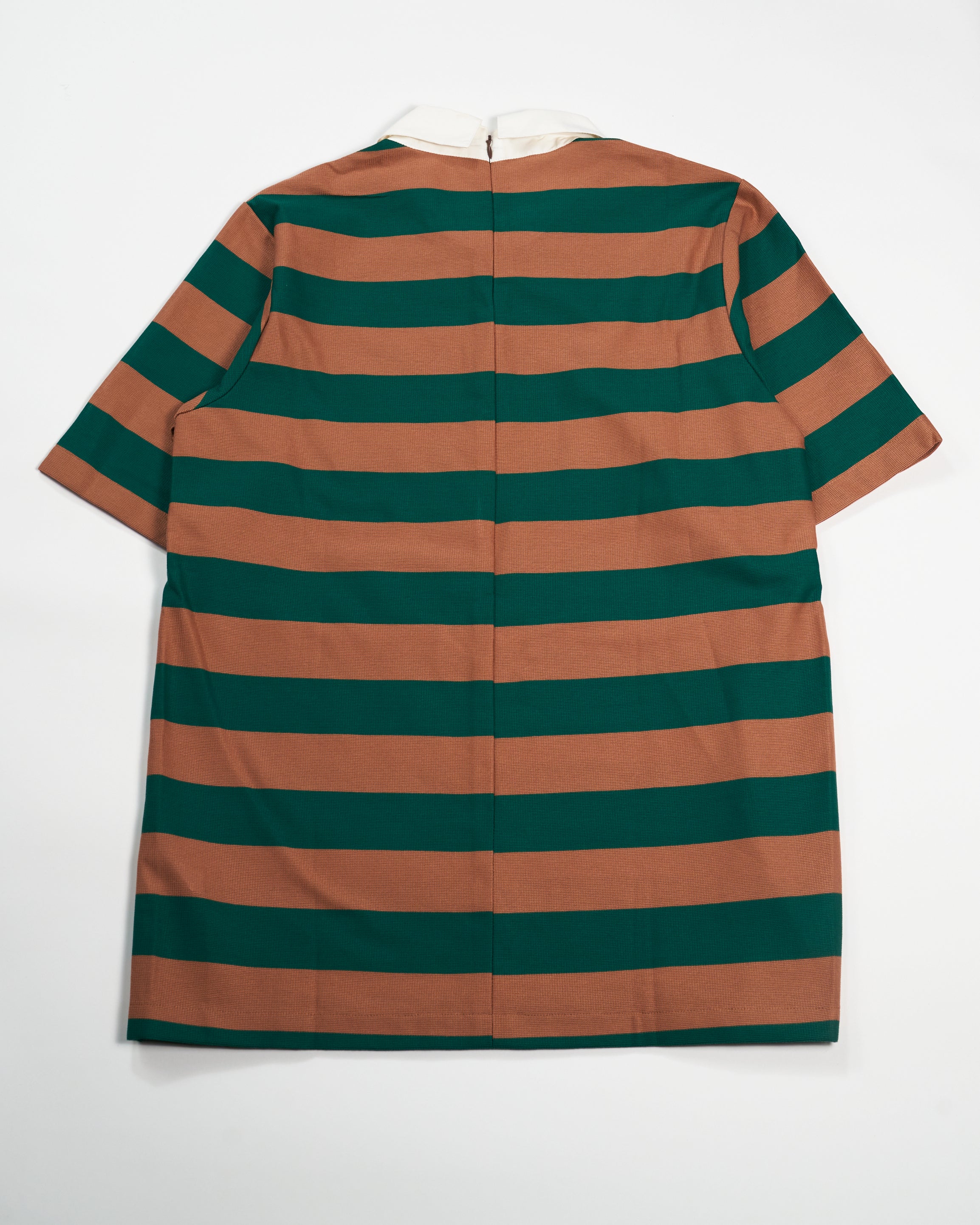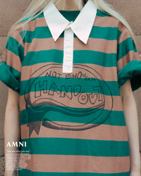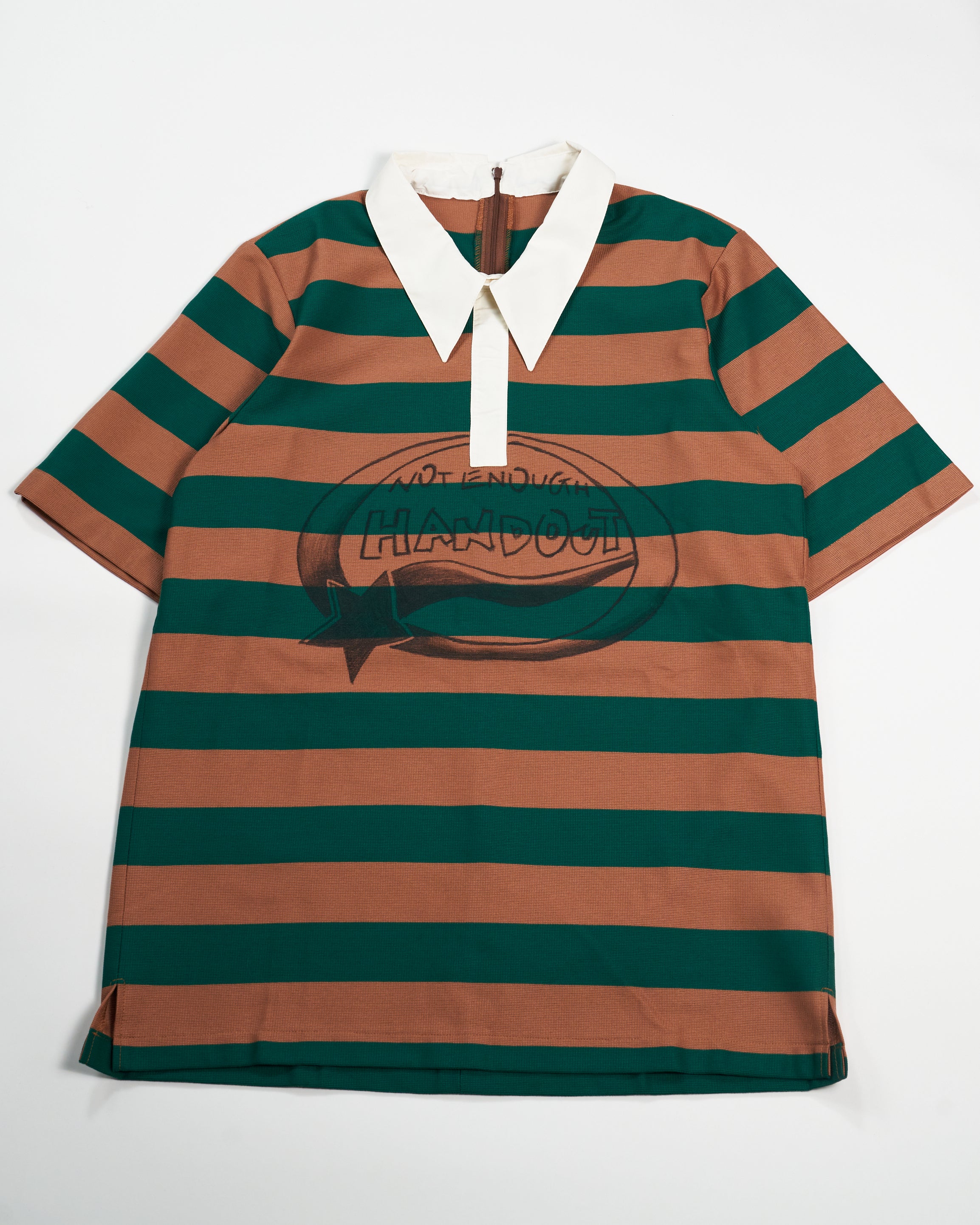 Un polo dont le graphisme, inspiré des mots entendus à l'école primaire et appliqué comme un griffonnage, attire le regard.