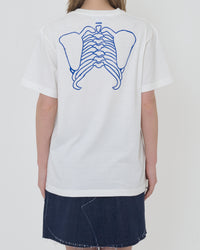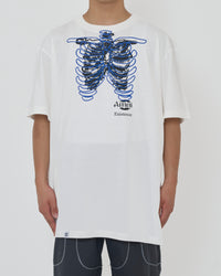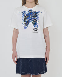 Un T-shirt graphique audacieux orné du motif de côtes emblématique de la collection.