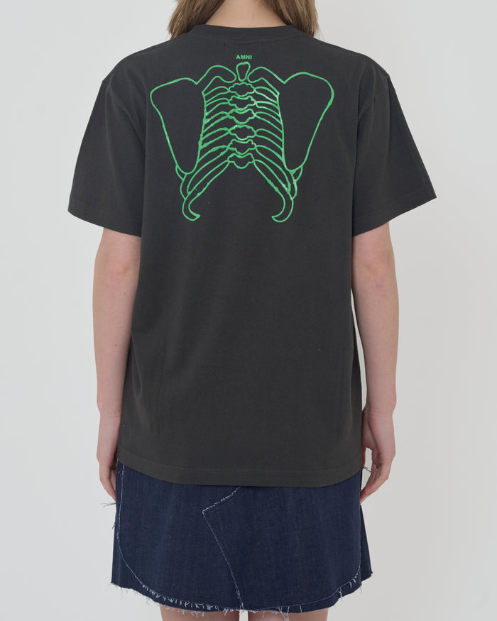 T-shirt squelette / Gris charbon × Vert clair