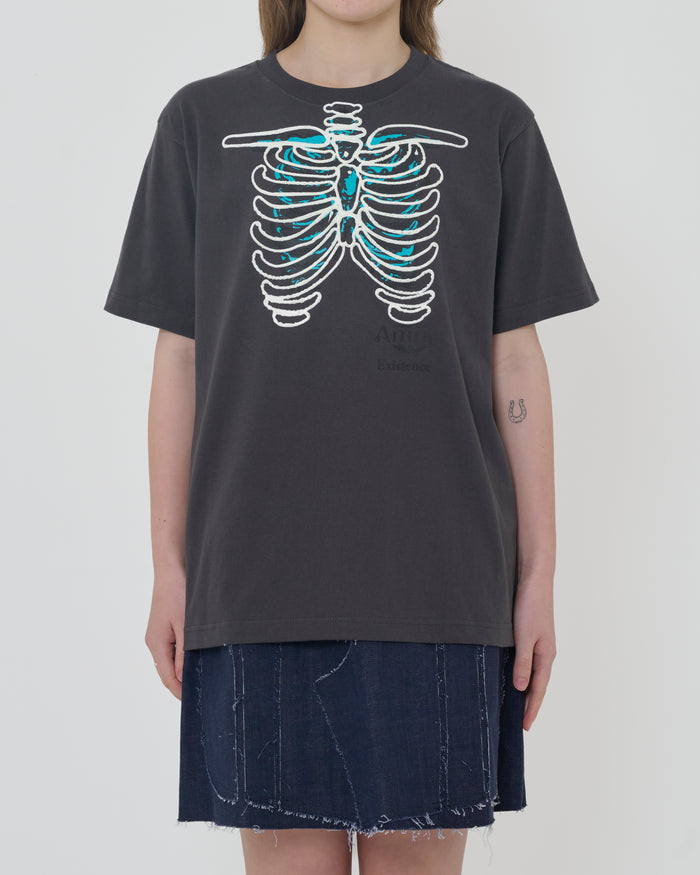 T-shirt squelette / Gris charbon × Bleu ciel