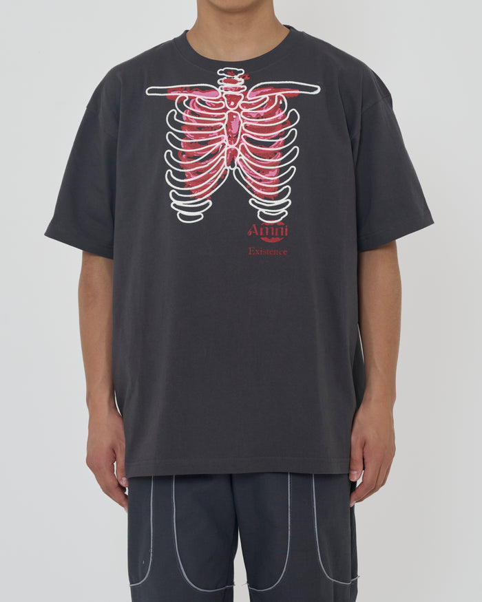 T-shirt squelette / Gris charbon × Rouge