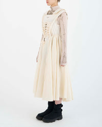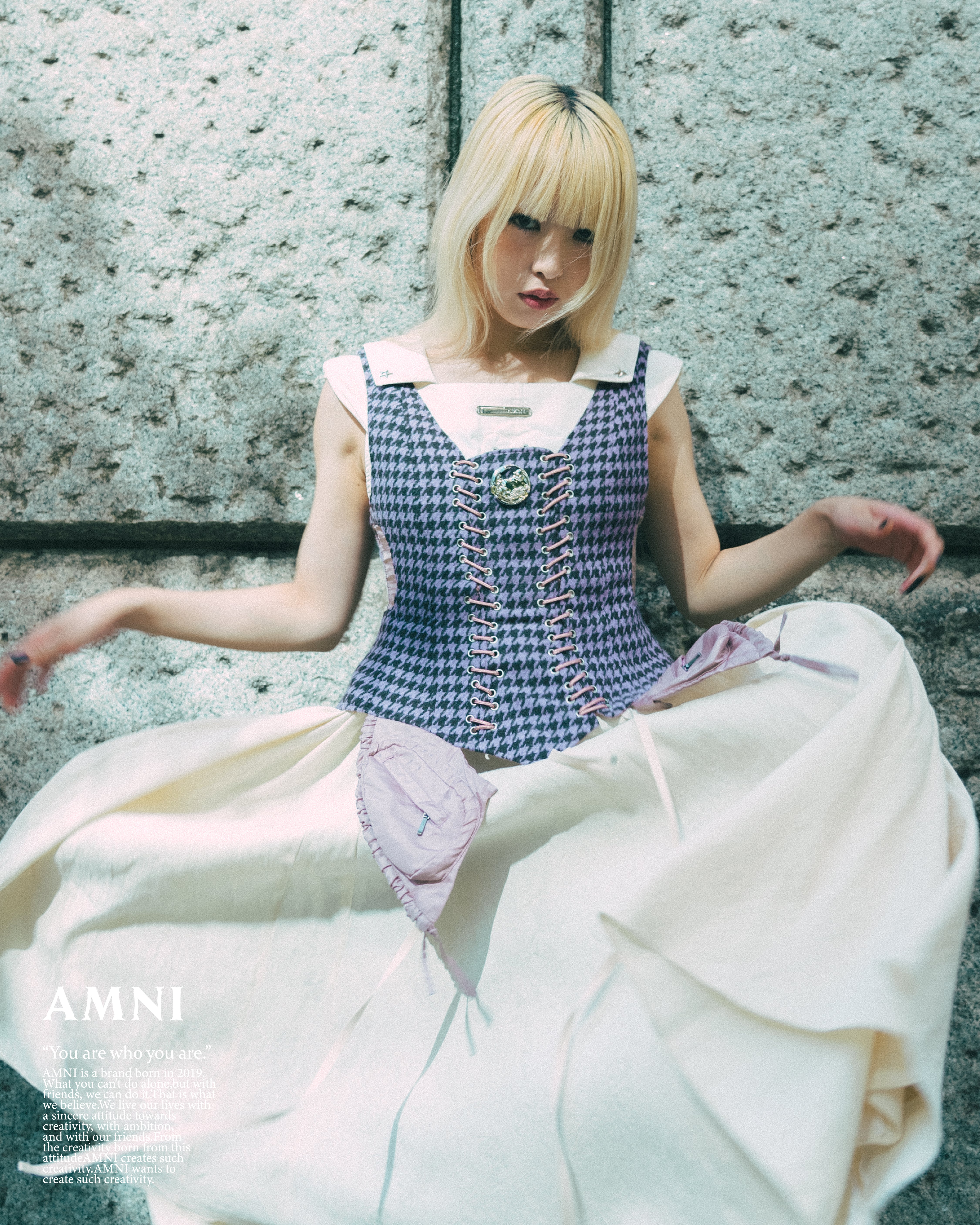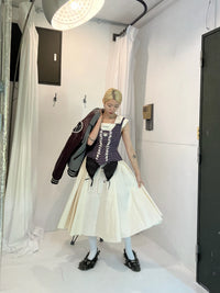 상의 부분에는 유니폼이나 셔츠 등 다양한 빈티지 의류를 사용하였고, 스커트의 소재와 끈, 묶는 방법까지 각각 다른 조합으로 구성되어 있습니다.