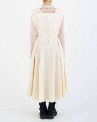 빈티지 의류와 의상의 남은 천을 업사이클링하여 모두 단 하나뿐인 드레스로 제작했습니다.