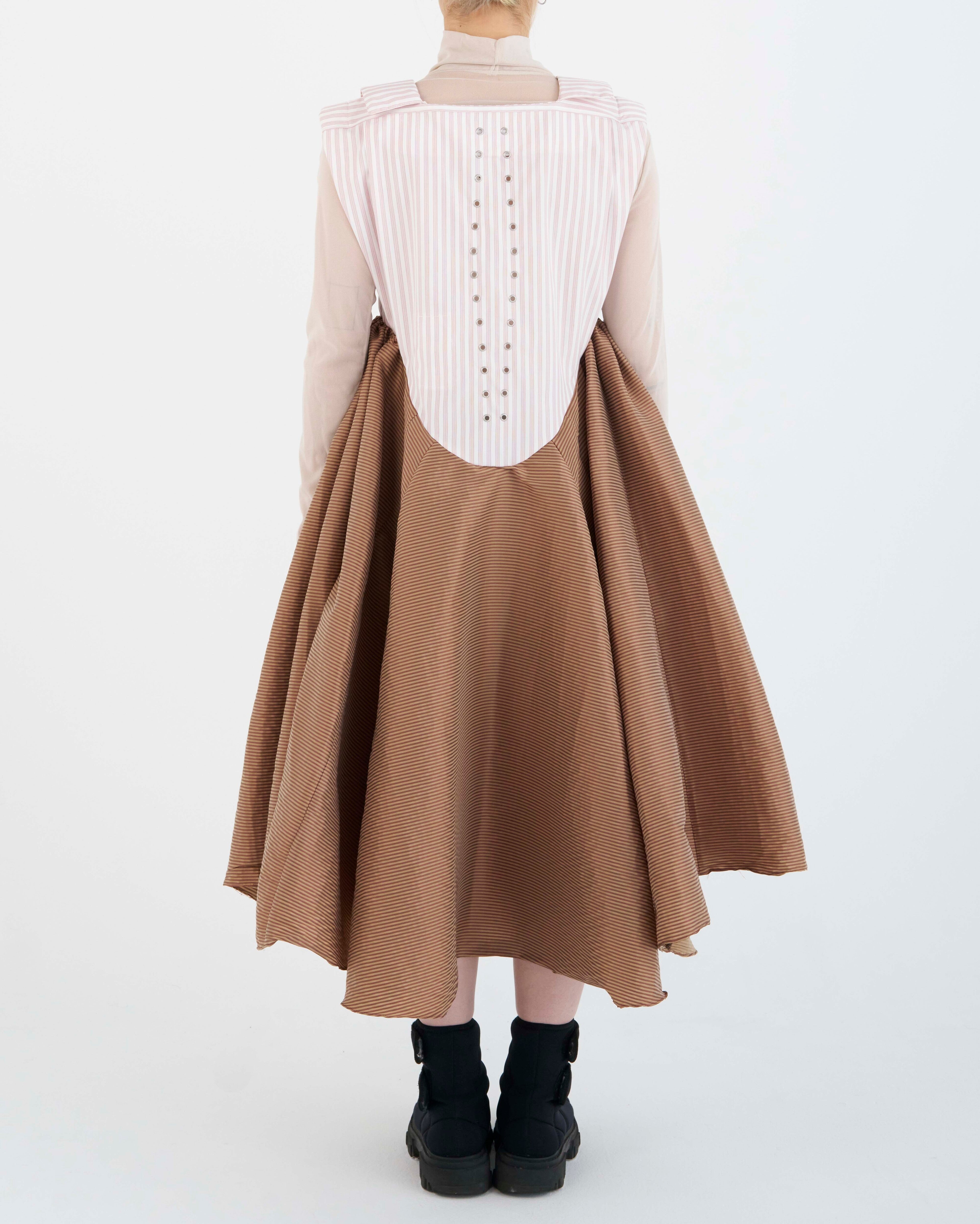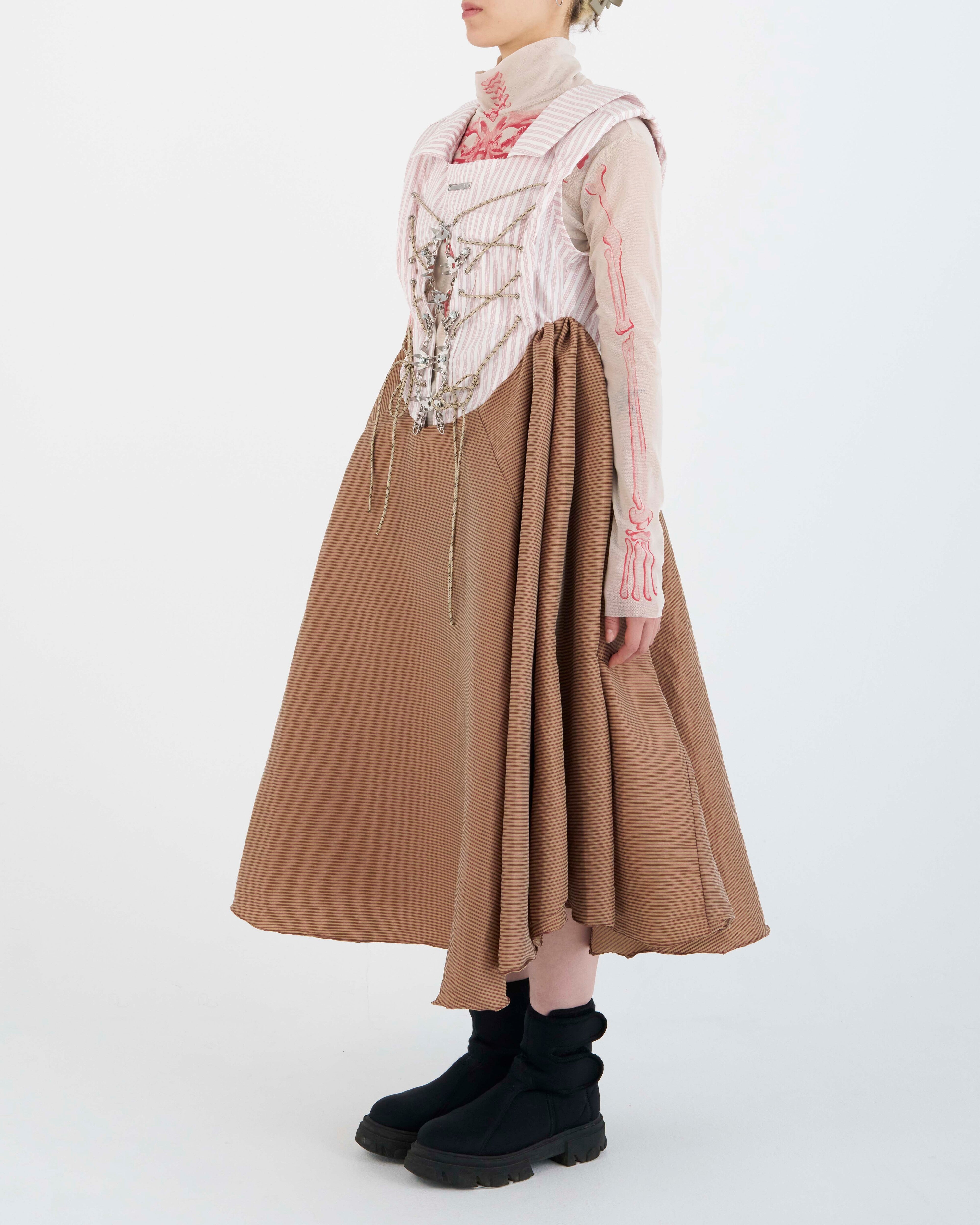 상의 부분에는 유니폼이나 셔츠 등 다양한 빈티지 의류를 사용하였고, 스커트의 소재와 끈, 묶는 방법까지 각각 다른 조합으로 구성되어 있습니다.