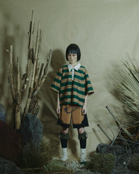 체조복을 연상시키는 사이드 라인은 앞면과 뒷면의 덧댐으로 재구성되어, 공예감과 세련됨을 겸비한 디자인입니다.