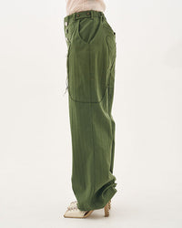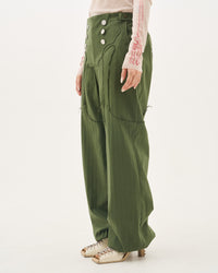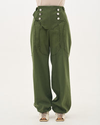 밀리터리 팬츠의 기능성을 바탕으로, 허리는 버튼 위치로 자유롭게 사이즈 조절이 가능합니다.