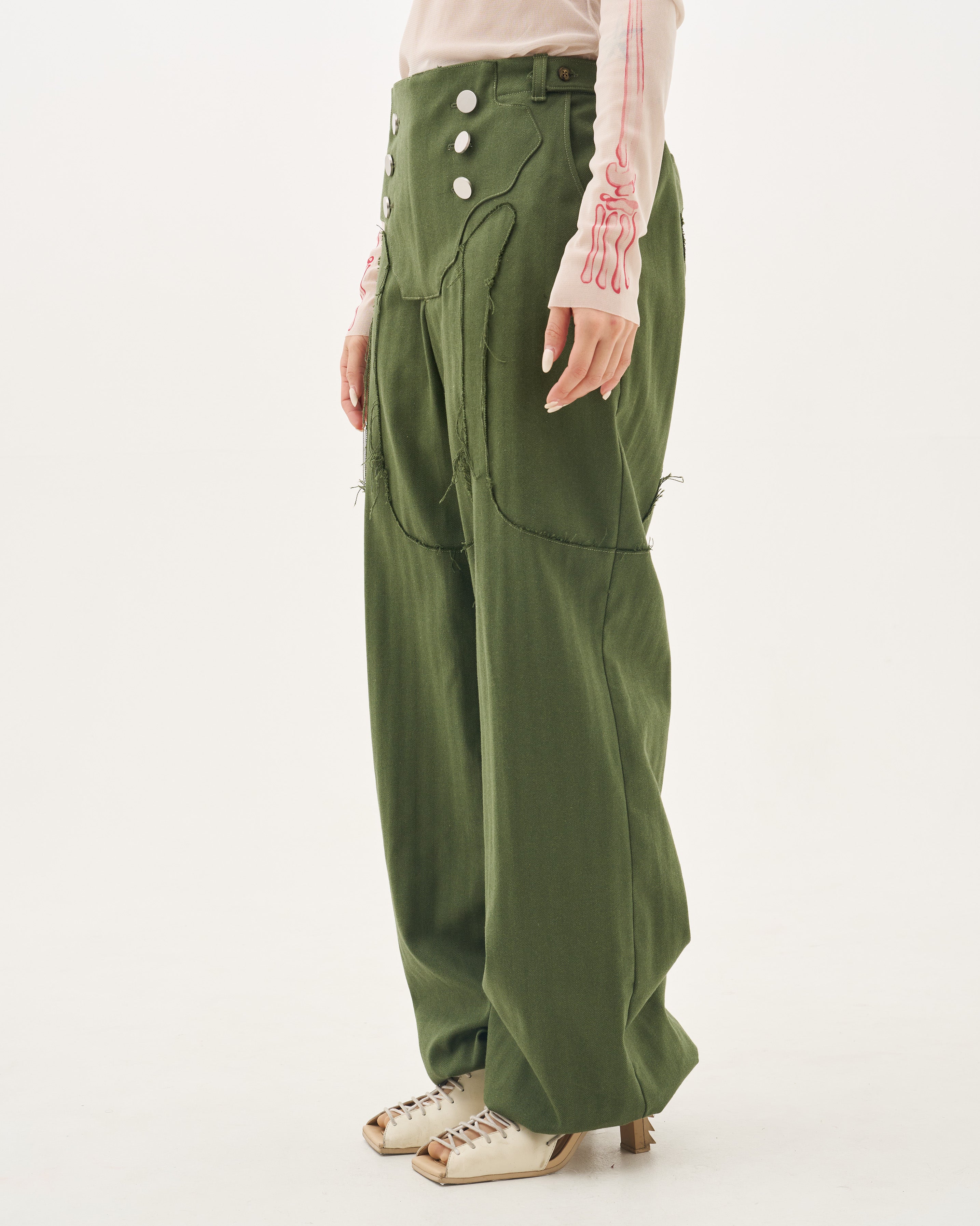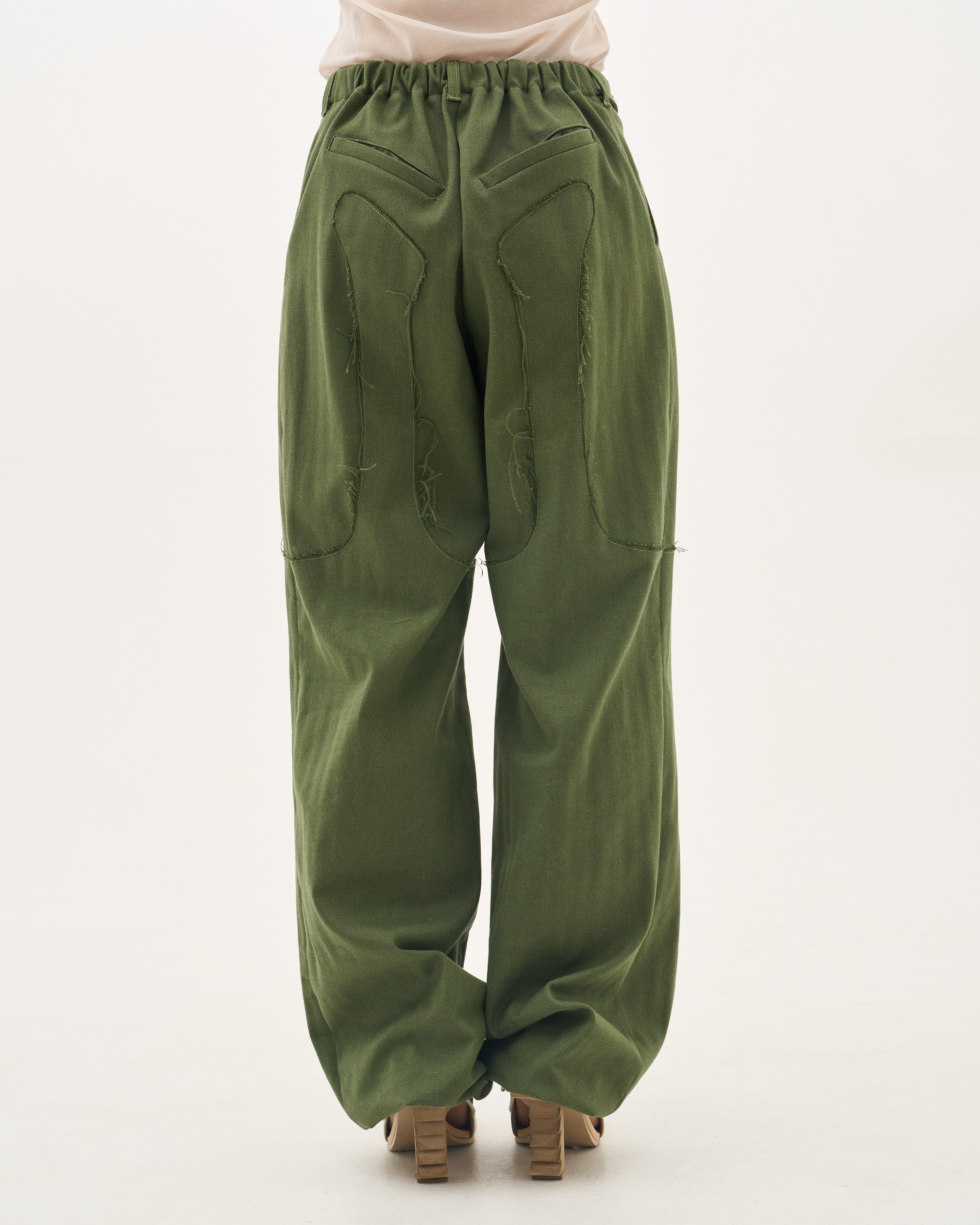 골격을 따라 전환을 가미한, 구조적인 디자인의 스켈레톤 팬츠입니다.
