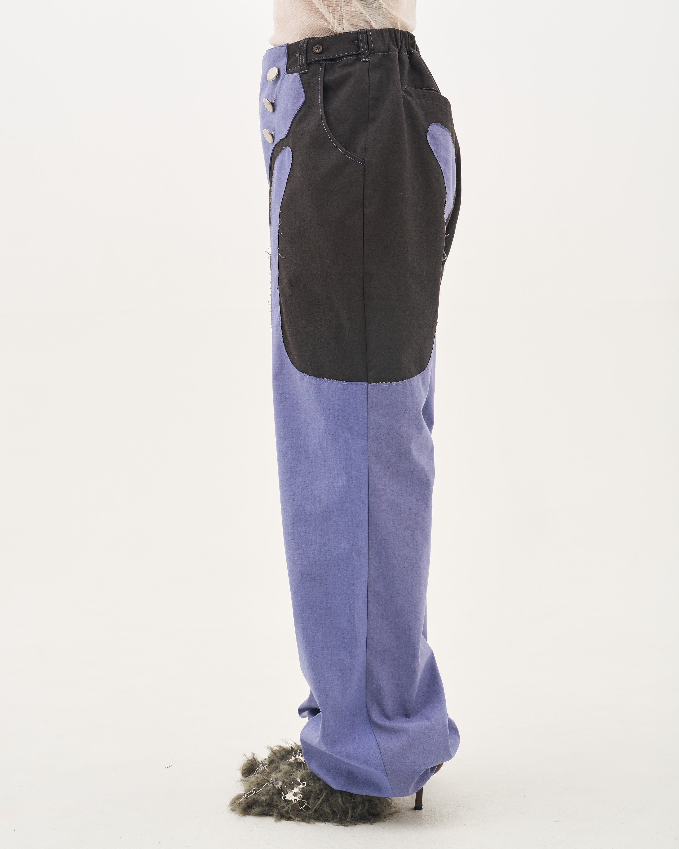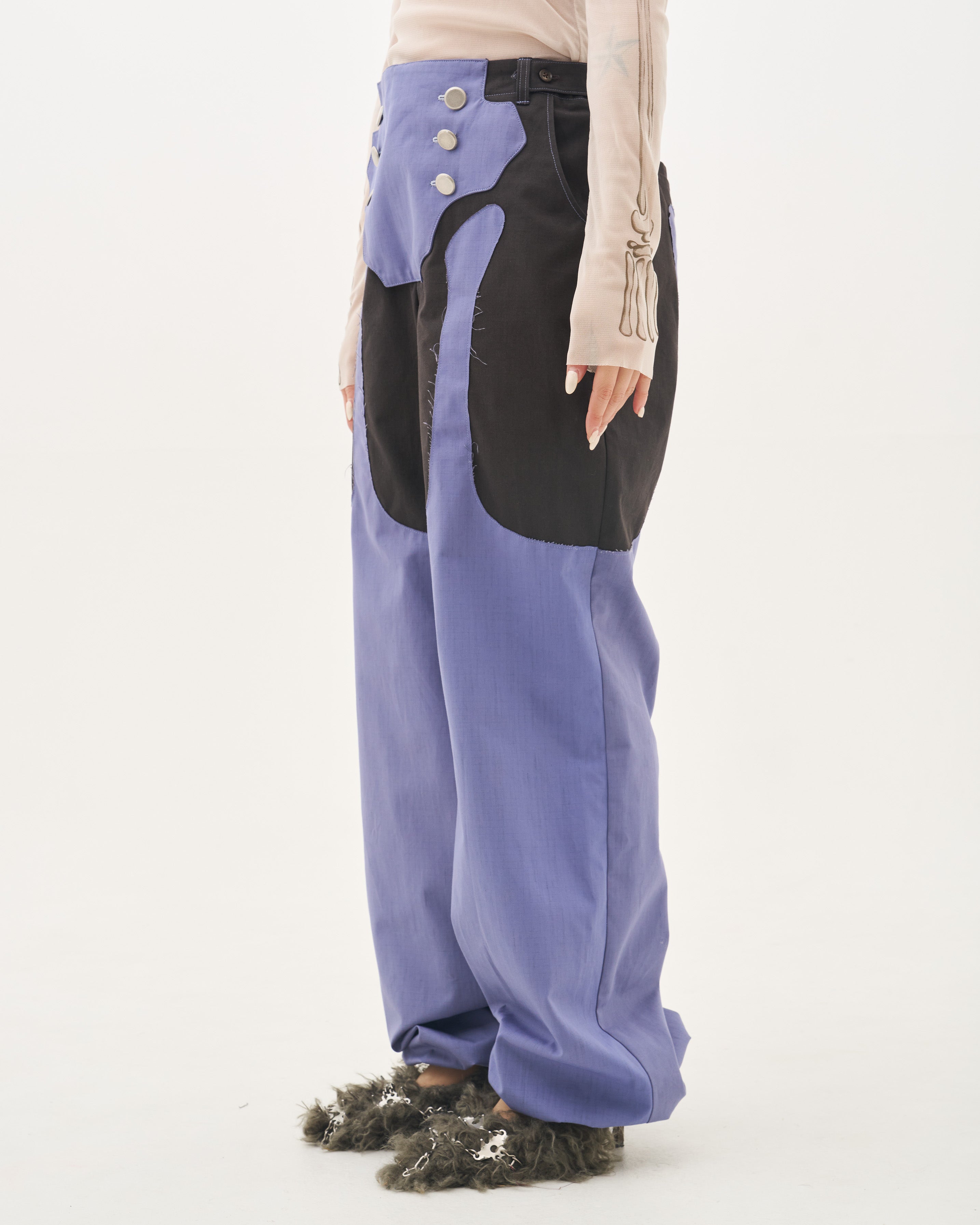 골격을 따라 전환을 가미한, 구조적인 디자인의 스켈레톤 팬츠입니다.