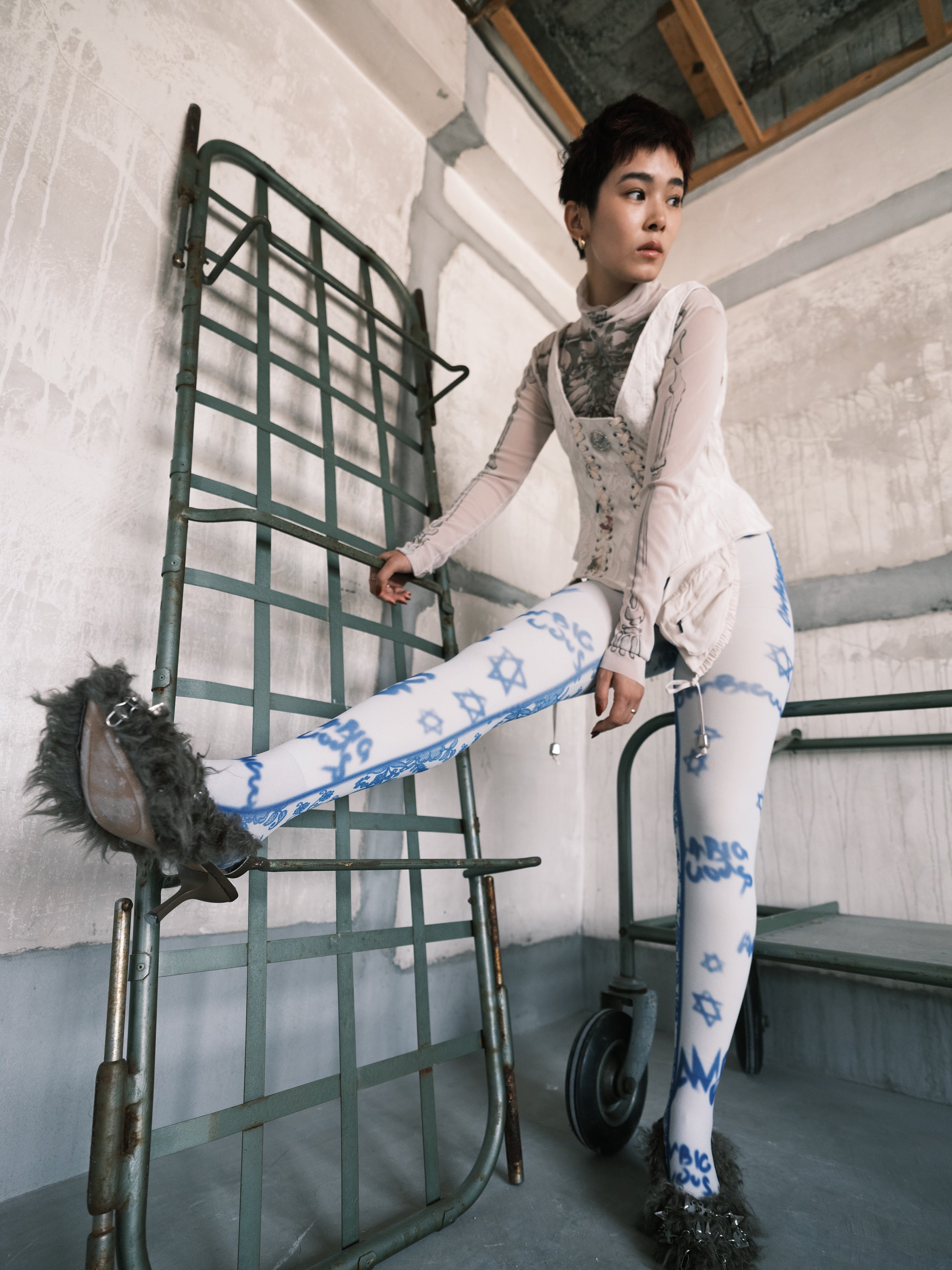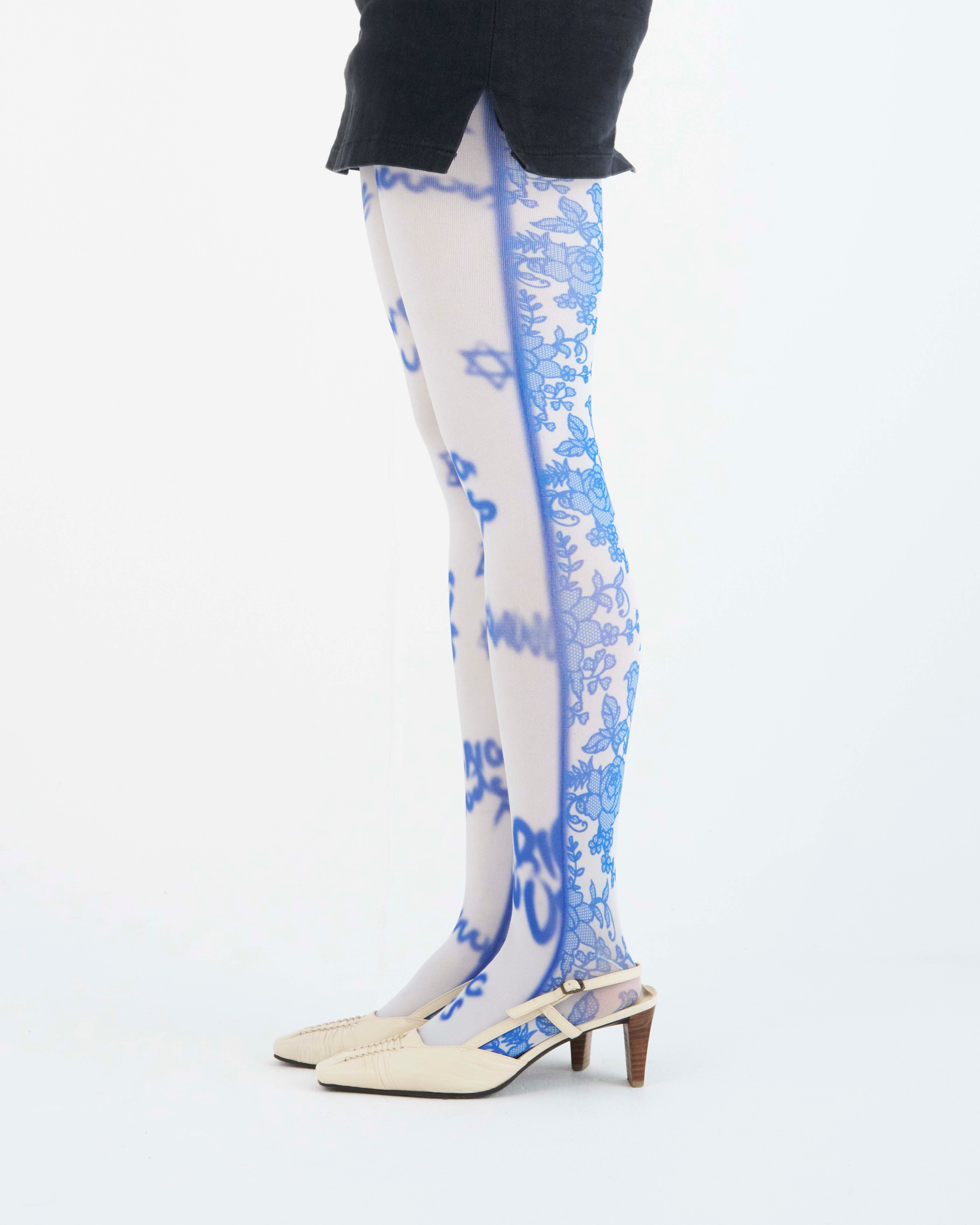 컬렉션에서 영감을 받은 드로잉이 프린트된 타이츠입니다.