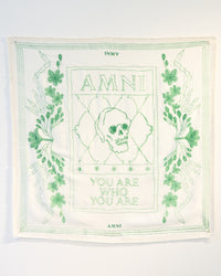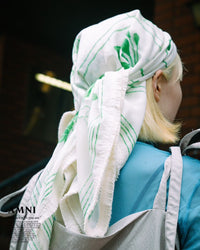 디자이너의 드로잉을 실크스크린으로 대담하게 프린트한 스카프입니다.