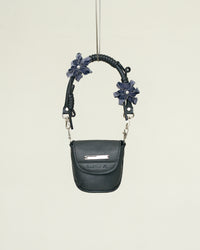 카메라 가방 특유의 독특한 형태에, 수작업으로 만든 꽃 모티프를 대담하게 감쌌습니다.