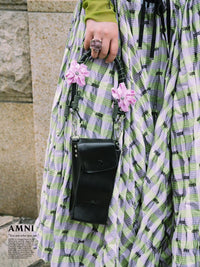 카메라 가방 특유의 독특한 형태에, 손수 만든 꽃 모티프를 대담하게 감쌌습니다.