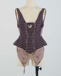 落ち着いた背面に対し、フロントは千鳥格子と柔らかなピンクブラウンでクラシカルな気品を表現。