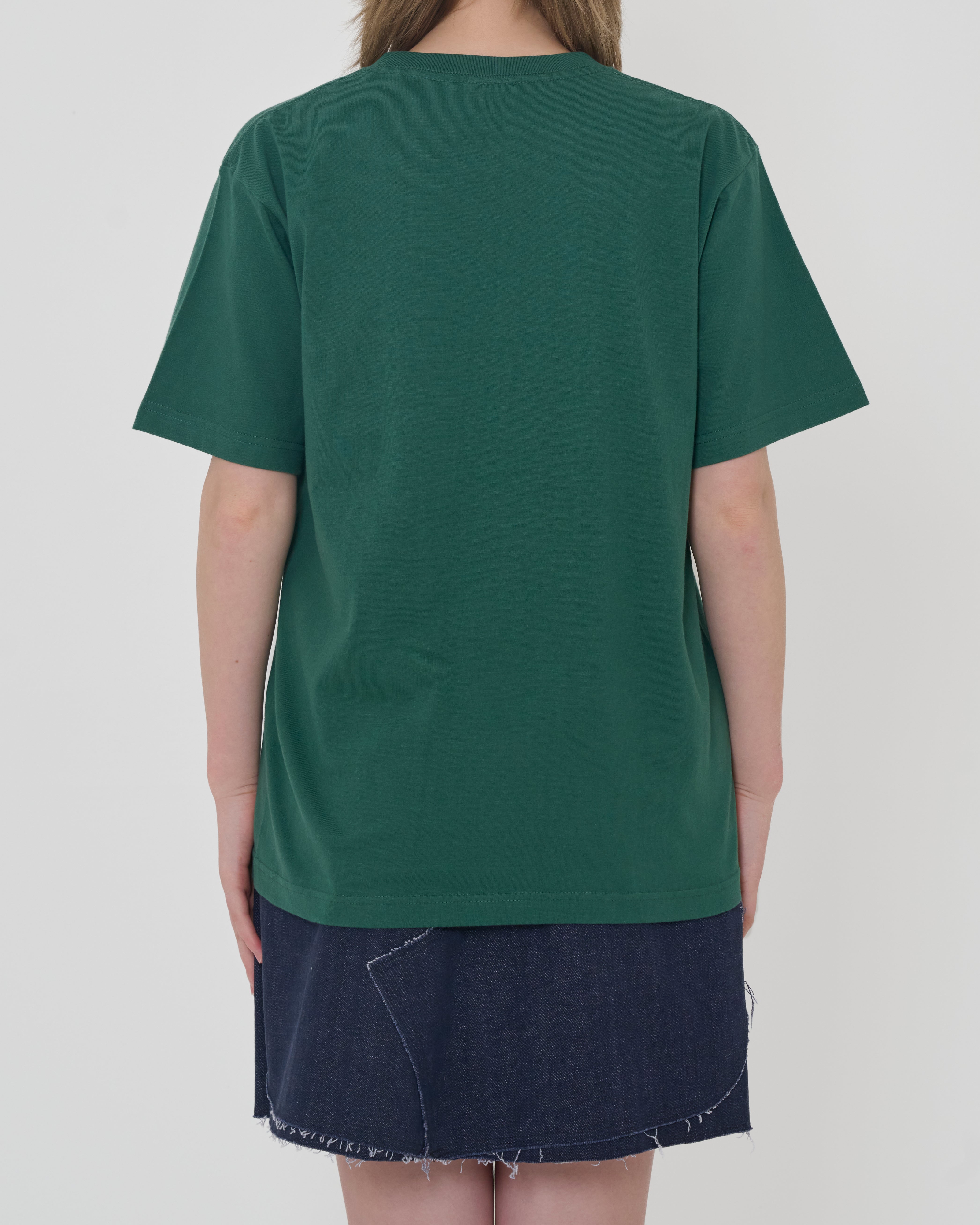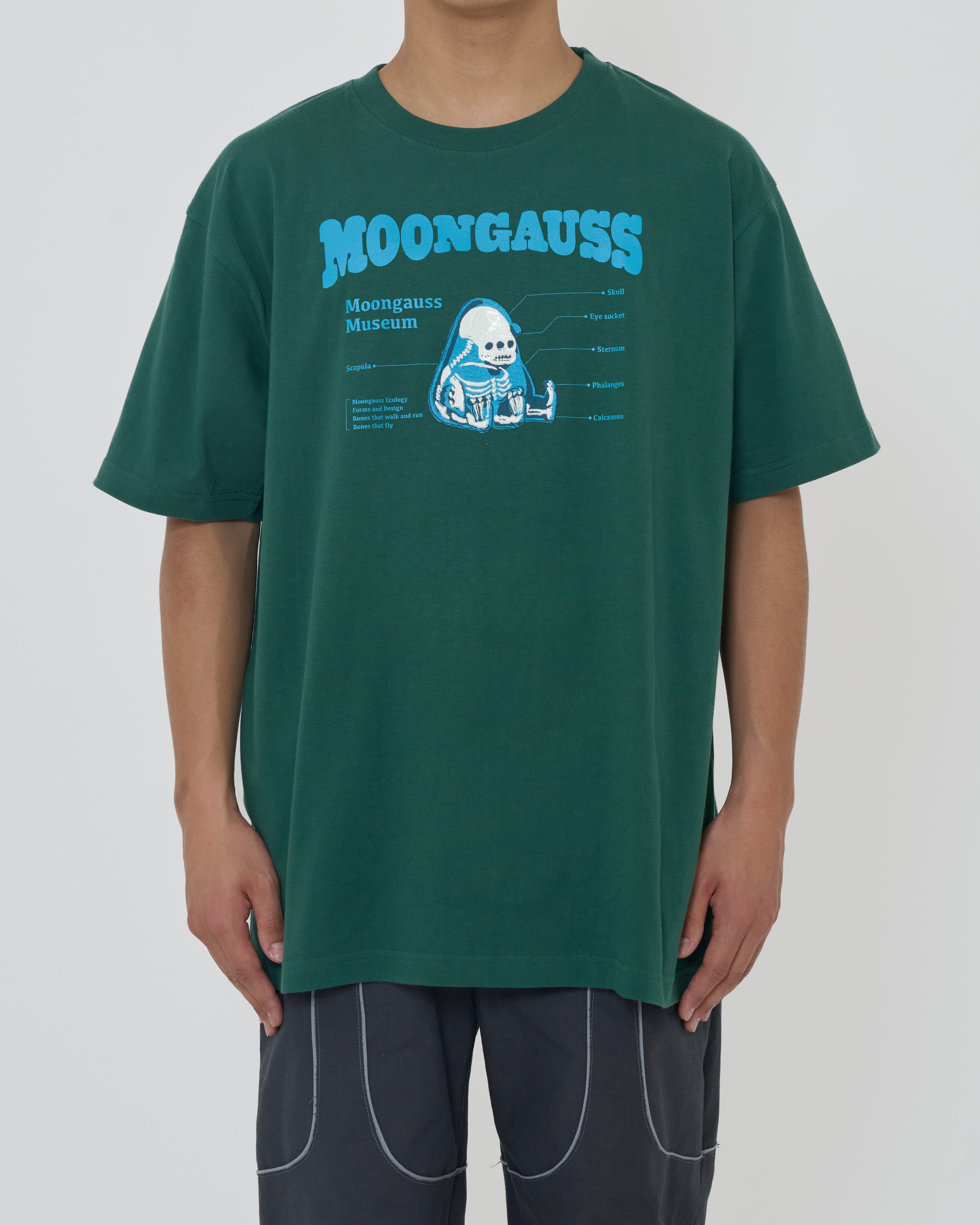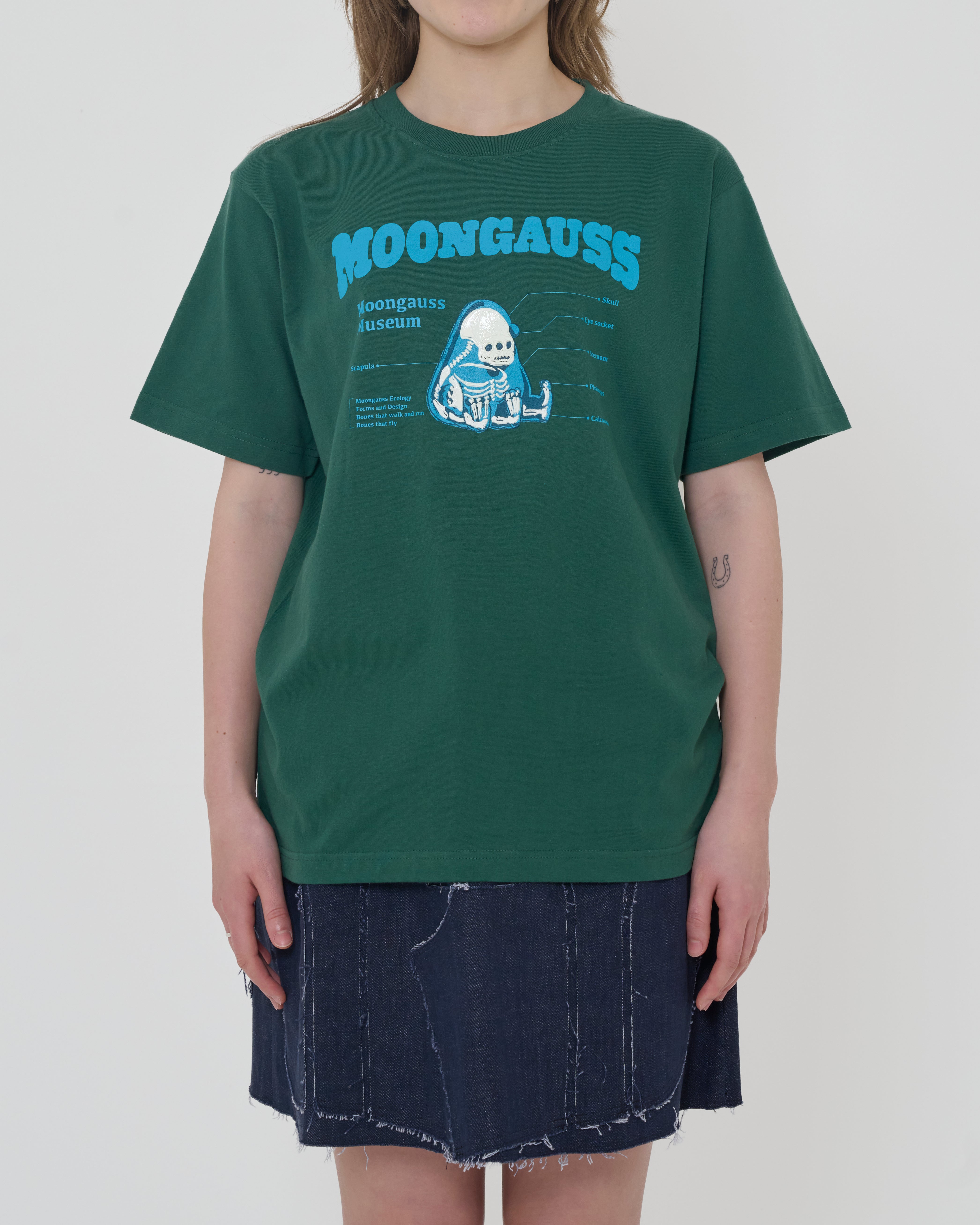 深いグリーンのボディに、ムーンガウスの骨格標本をモチーフにしたグラフィックをプリントしました。